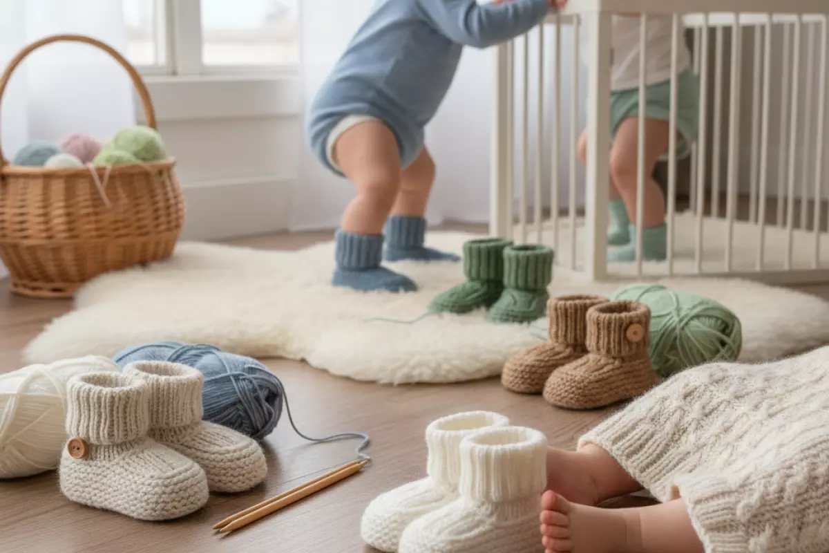 | Ребёнок начинает вставать | Скользкая подошва | Плотная подошва, нескользящая пряжа/вкрапления, рельефный узор | Проверить на полу: нет ли «катания» при лёгком нажатии |