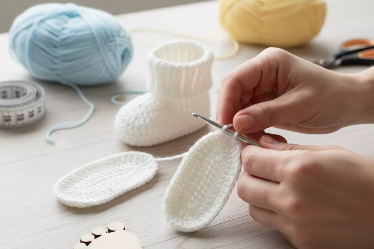 - Подъём: добавляйте прибавки/укороченные ряды там, где ножке нужно место. Если верх «перетягивает», пинетка будет сползать и собираться складкой у пальцев.