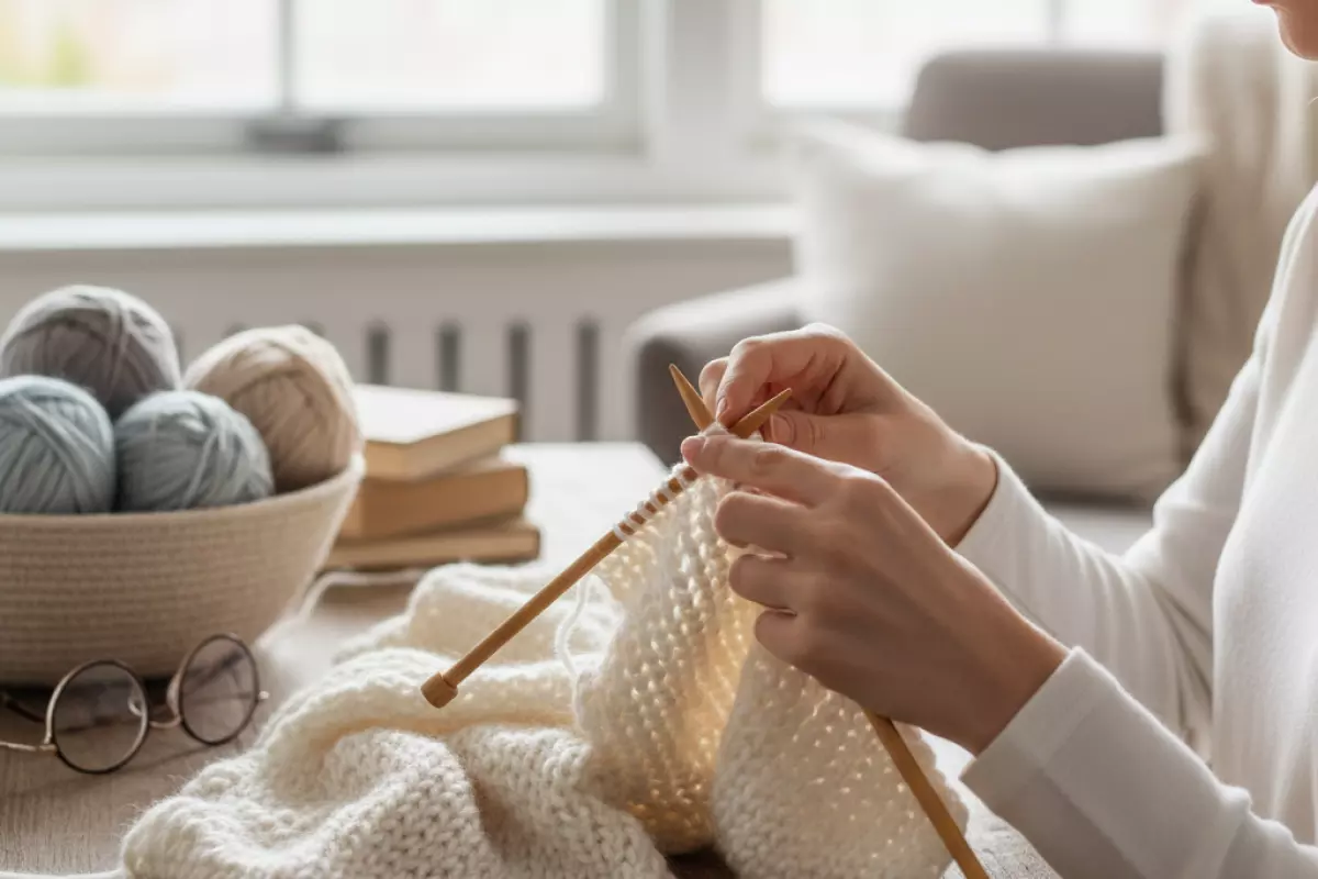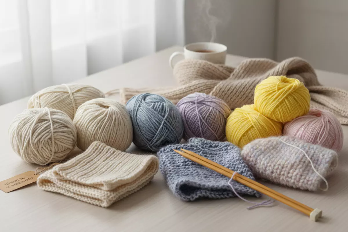 Смотрите на три вещи: комфорт у шеи, насколько вещь будет держать форму и как часто вы готовы ее стирать. Для первой работы проще всего взять нить средней толщины: петли хорошо видны, а полотно растет быстро.
