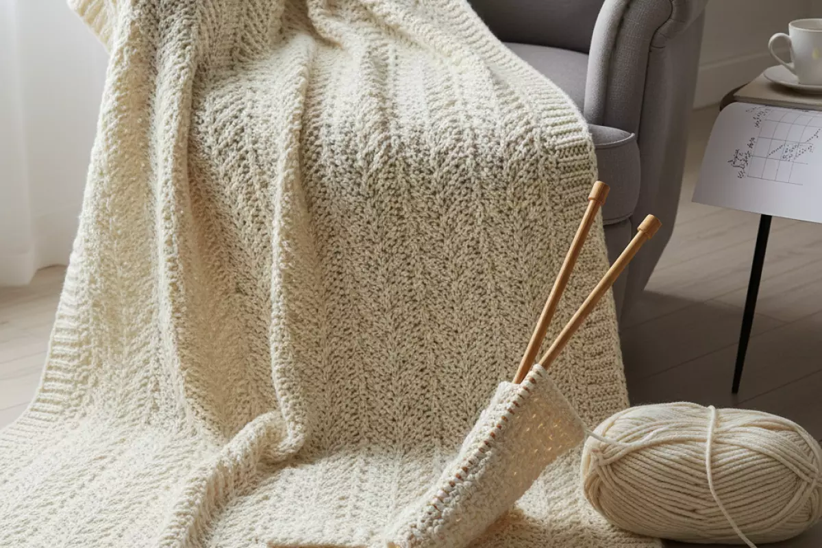 Для пледа важнее всего тактильность, износостойкость и то, как полотно держит форму после стирки. На выбор влияет и рисунок: рельефные узоры любят упругую нить, а ажур лучше смотрится на более гладкой.