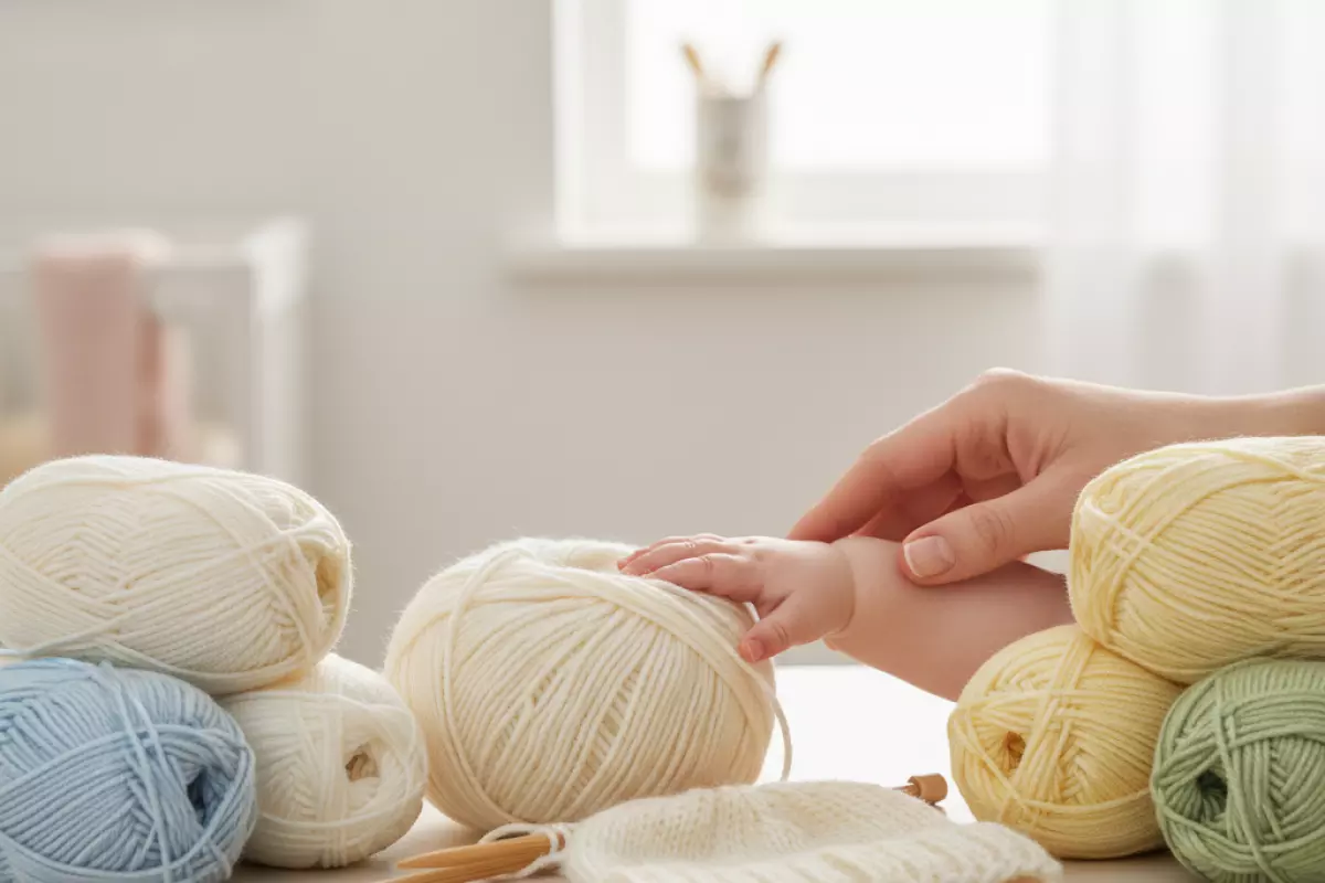 - Безопасность: пушистые нити (мохер, ангора) для малышей лучше не использовать — ворс может попадать в рот и глаза.