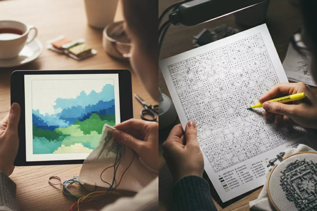 Минусы тоже есть: близкие оттенки на бумаге или экране могут выглядеть почти одинаково, а при плохом освещении границы между цветами читаются хуже. Ещё одна частая проблема — принтер или монитор искажает палитру, и вы начинаете сомневаться, какой участок чем шить.