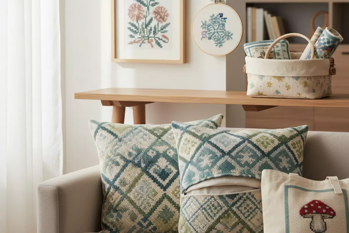 Готовый крестик не обязан лежать в папке с работами: его удобно «встроить» в быт — от декора дома до небольших подарков. Главное — заранее понять, будет ли вещь стираться, тереться и попадать на солнце: от этого зависит ткань, оформление и способ крепления.