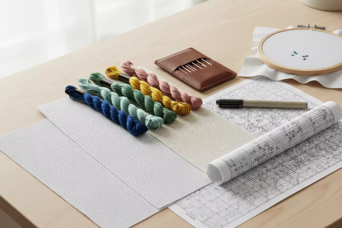 Для старта важнее всего собрать базовый набор: ткань-основу, нитки, иглы и то, чем вы будете переносить схему. От этих вещей зависит, насколько ровно лягут стежки, будет ли «пушиться» нить и удобно ли держать работу в руках.