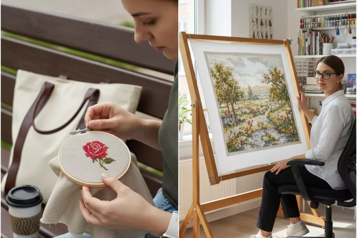 | Пяльцы/рама | Надёжность фиксации, следы на ткани, удобство натяжки | Экономить на креплении и потом «лечить» заломы | Взять одну качественную основу и менять только размер, если система модульная |