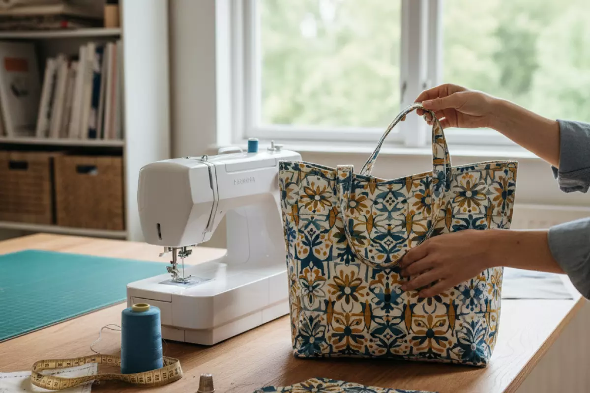 | Шоппер с подкладкой (выворотный) | Аккуратный вид без окантовки припусков | Верх — плотнее, подкладка — хлопок/саржа | Не забыть отверстие для выворачивания, выметать углы | 2–3 часа |