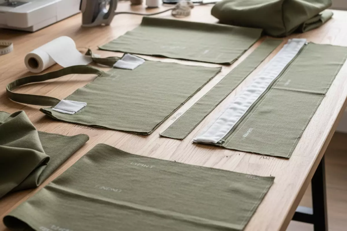Когда все детали раскроены, продублированы и промаркированы, сложите их стопками по узлам: «наружные», «подкладка», «карманы», «ручки», «фурнитура». Это экономит время и снижает шанс перепутать парные элементы.