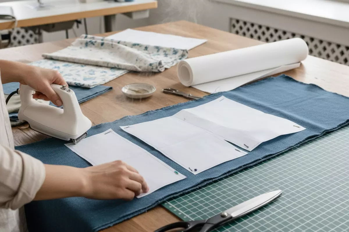 - Декатируйте материал: хлопок и лен — стирка/замачивание и утюжка, синтетику — отпаривание через проутюжильник. Это снижает риск усадки уже после пошива.