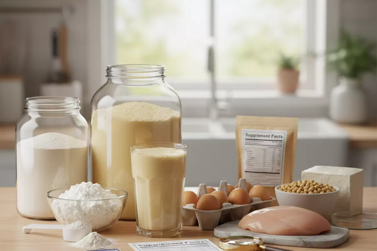Смотри не на громкие надписи на банке, а на то, из чего сделан порошок и сколько в нём реально «чистого» нутриента. На этикетке важнее всего: источник (сыворотка, казеин, яйцо, соя и т. д.), доля белка на 100 г, наличие подсластителей/загустителей и прозрачность по аминокислотам.