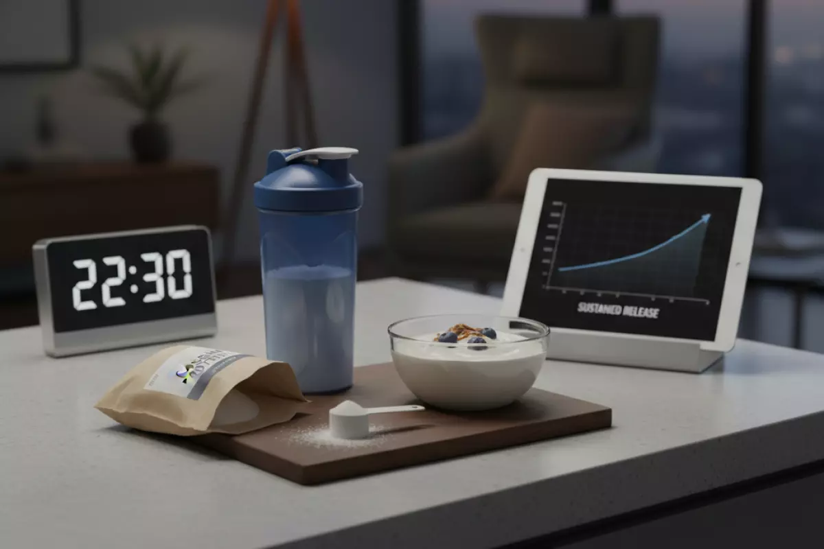 Оптимальный момент зависит от того, сколько времени вы планируете провести без еды и какая у вас цель: поддержать чувство сытости, закрыть «окно» без белка или добрать суточную норму. Казеин переваривается медленно, поэтому он особенно удобен там, где нужен длительный «фон» аминокислот.