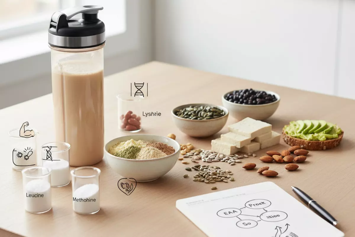 Смысл комбинирования прост: разные источники дают разные аминокислотные «профили», и за счёт этого проще закрыть потребности в незаменимых аминокислотах (в том числе лейцине) без постоянного упора в один продукт. На практике не нужно высчитывать каждую граммовку — достаточно регулярно чередовать 2–4 базовых источника в течение дня.