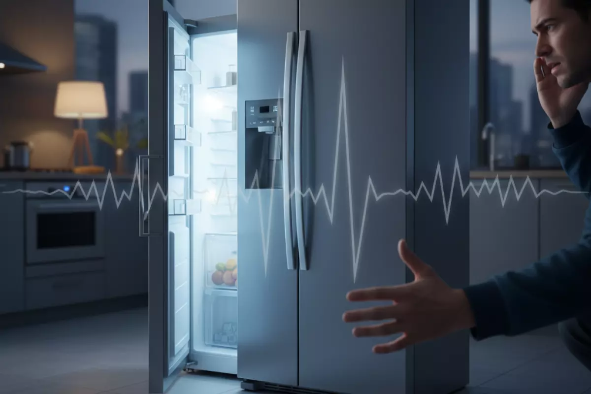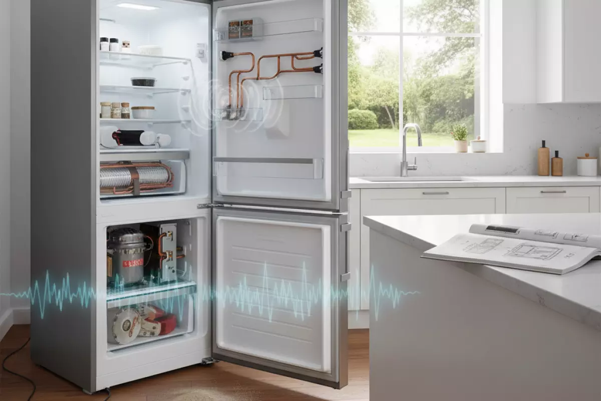 Громче всего в холодильнике обычно слышны три источника: моторный узел, вентилятор обдува и работа автоматики оттайки. Важно отличать нормальные звуки (короткие включения, ровное гудение, щелчок реле) от симптомов поломки — скрежета, сильной вибрации, частых стартов и остановок.