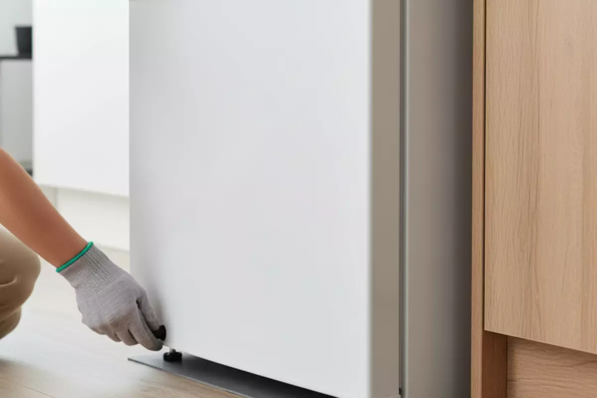 - Отрегулируйте ножки: подкрутите передние опоры так, чтобы корпус не качался, а дверца сама плавно закрывалась (обычно помогает небольшой наклон назад).