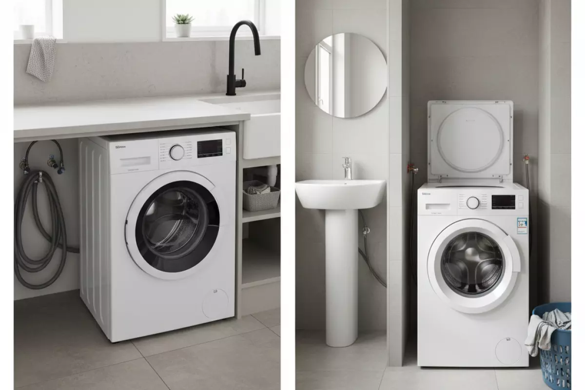 Сначала решите, куда именно встанет техника: в нишу на кухне, под столешницу, в ванную рядом с раковиной или в узкий простенок. От этого зависит, что важнее — глубина корпуса, возможность открыть люк, доступ к лотку для порошка и то, как пройдут шланги сзади.