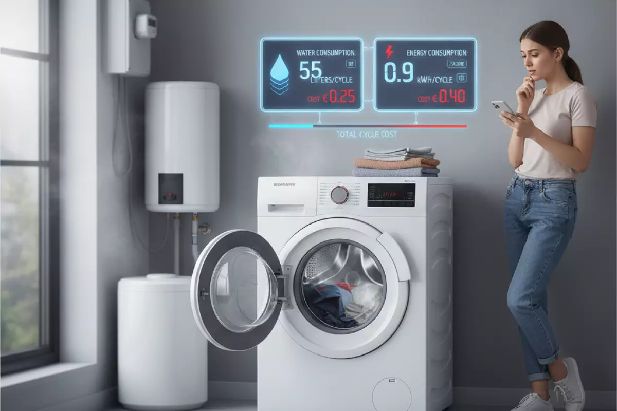 Смотрите не только на цену и набор программ, а на то, сколько техника будет «съедать» за каждую стирку. Эти цифры влияют на ежемесячные счета и особенно заметны, если стираете часто или большой семьёй.