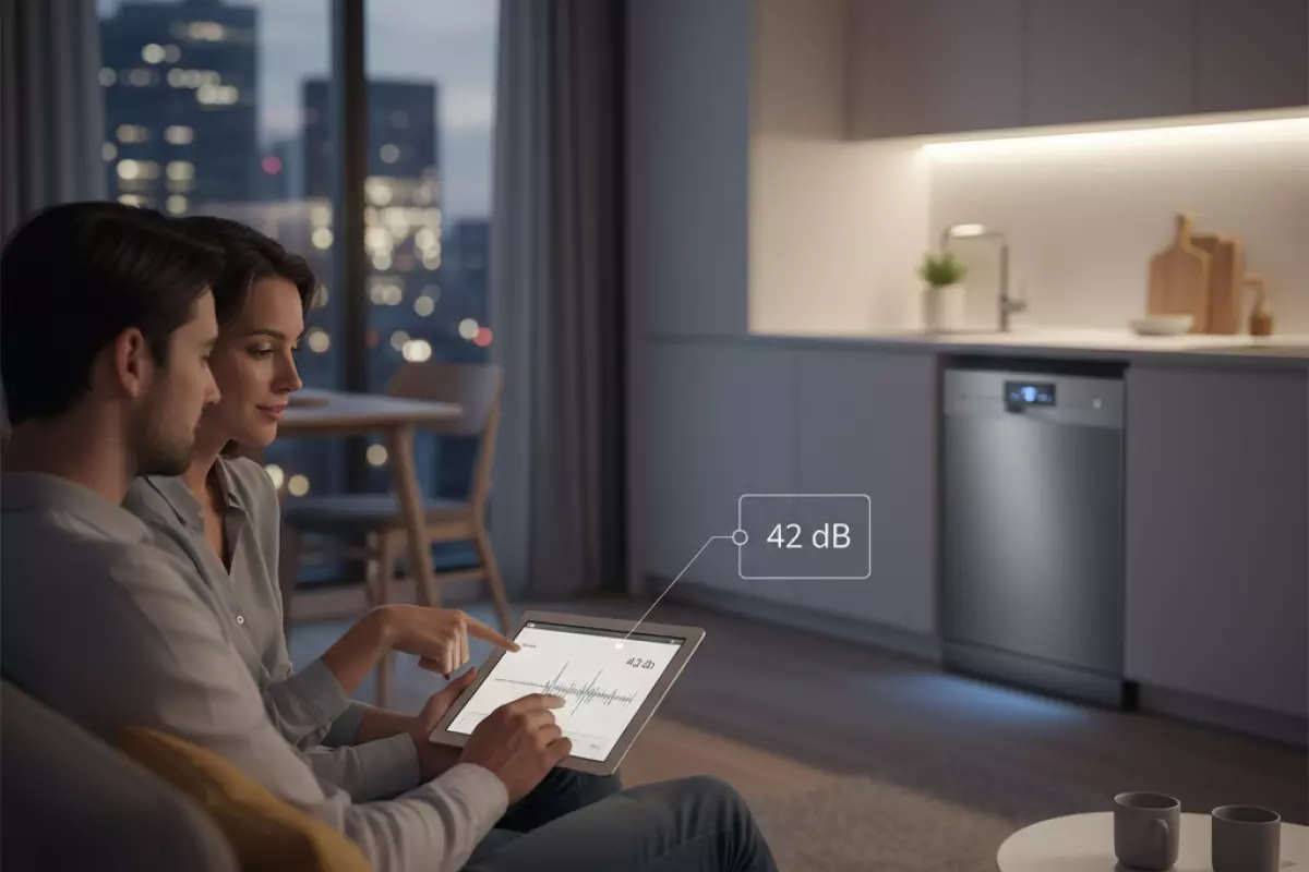 Смотрите на показатель в дБ и на то, где именно будет стоять техника: в студии и кухне-гостиной разница между «тихо» и «терпимо» ощущается сильнее, чем в отдельной кухне с дверью. Для ориентира: около 40–44 дБ обычно воспринимается как спокойный фон, 45–49 дБ уже заметно в тишине, а 50+ дБ чаще раздражает при вечернем режиме, особенно если кухня рядом со спальней.