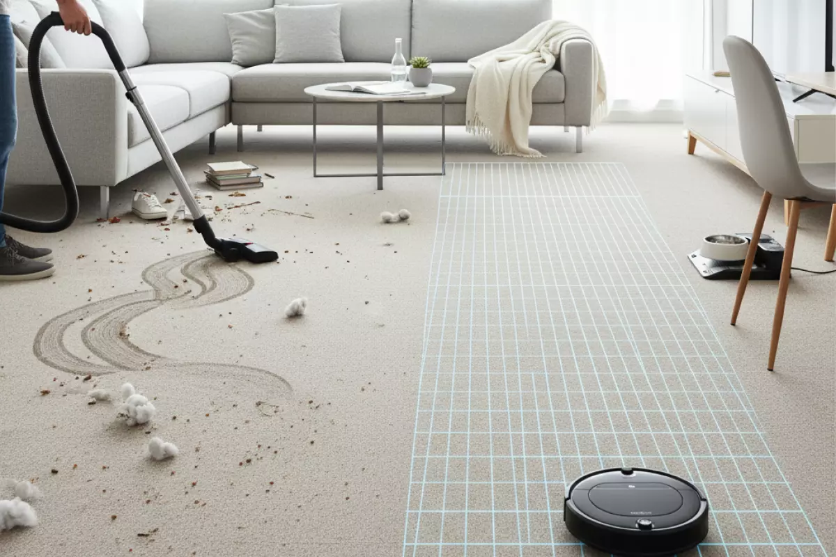 На практике это означает, что робот лучше подходит для регулярного поддержания чистоты, а ручная техника — для точечной и «глубокой» проходки там, где нужно прижать насадку, поднять ковёр или пройтись медленно по проблемному месту.
