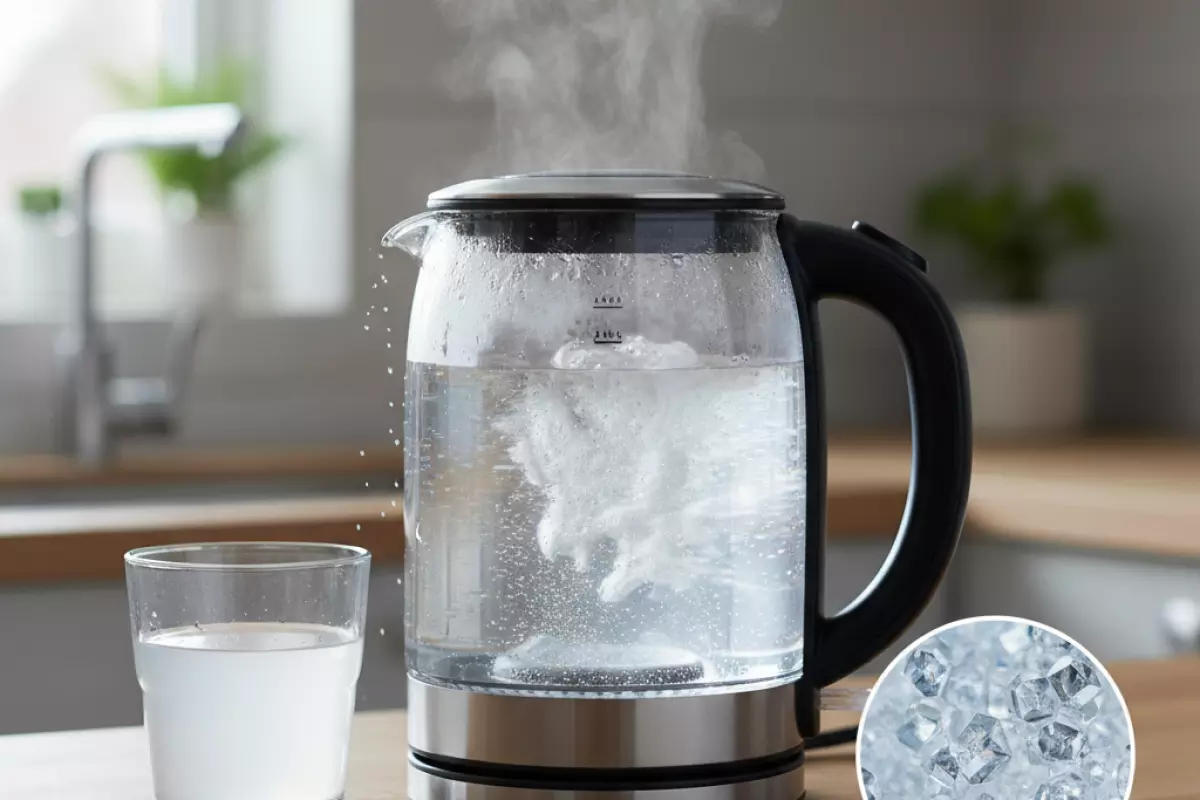 | Долго держите кипение (не выключаете сразу) | Испарение усиливается, CO₂ выходит активнее | Концентрация солей растёт, карбонаты образуются быстрее | Выключайте сразу после закипания, не «вываривайте» воду |